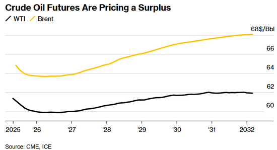 从2026年底到至少2030年,远期曲线已经转弱为远期升水结构,这表明交易商正在对长期前景重新定价,以考虑石油过剩的问题。