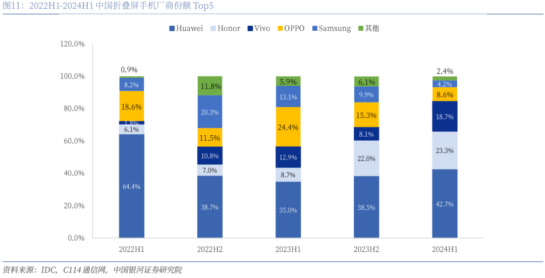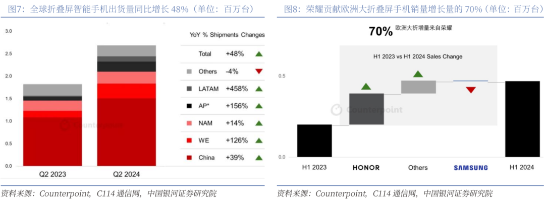 (二)24Q2全球折叠屏手机出货量同比+48%,中国厂商打下超半壁江山