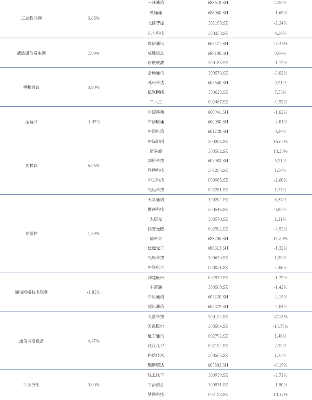 (二)一周载波通信及电网、光模块相关子板块表现较好