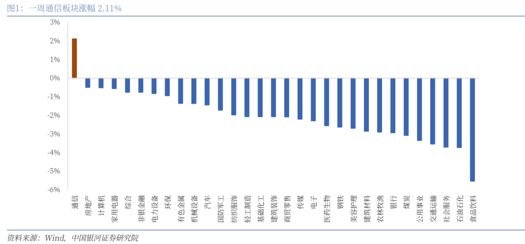 (一)一周通信行业指数涨幅2.11%